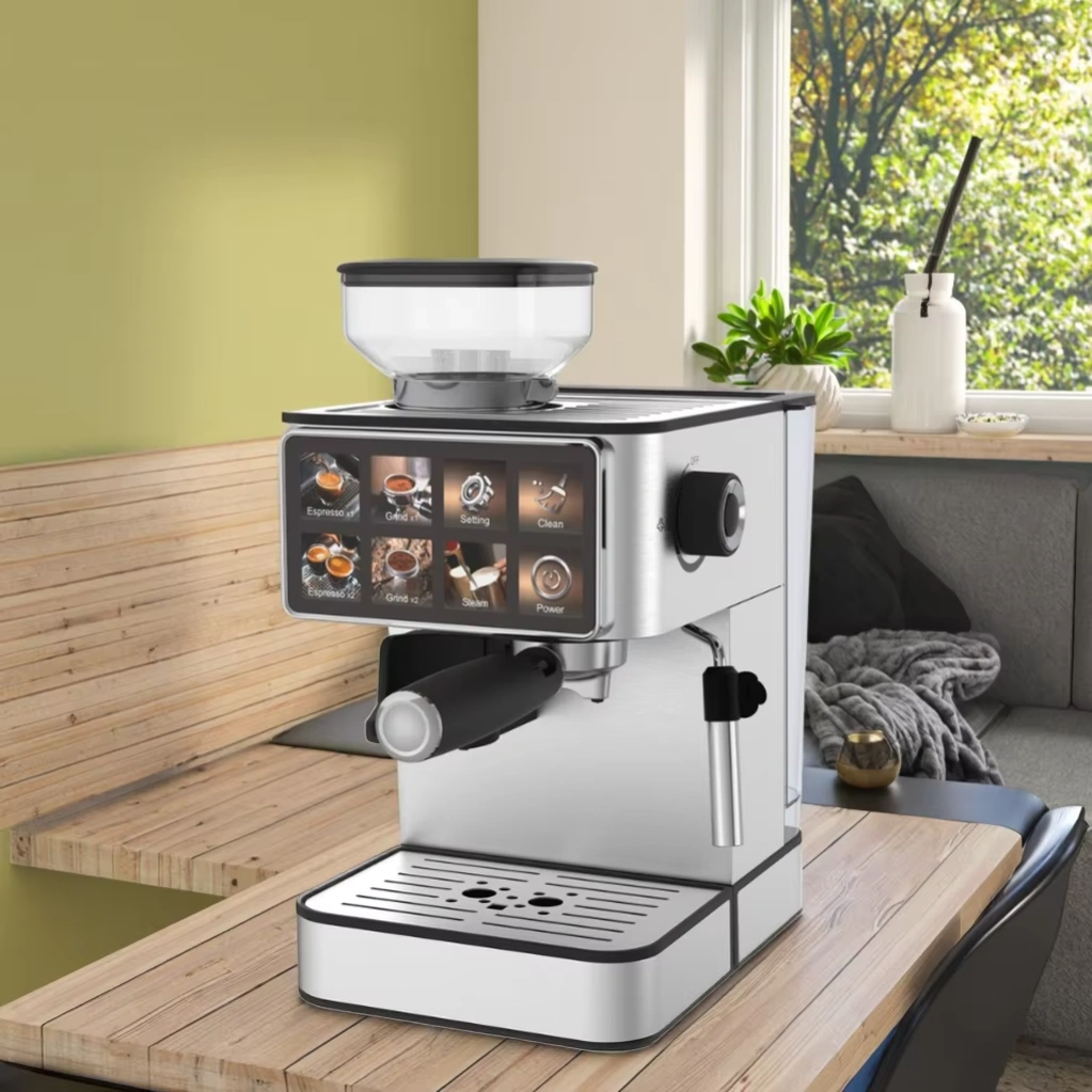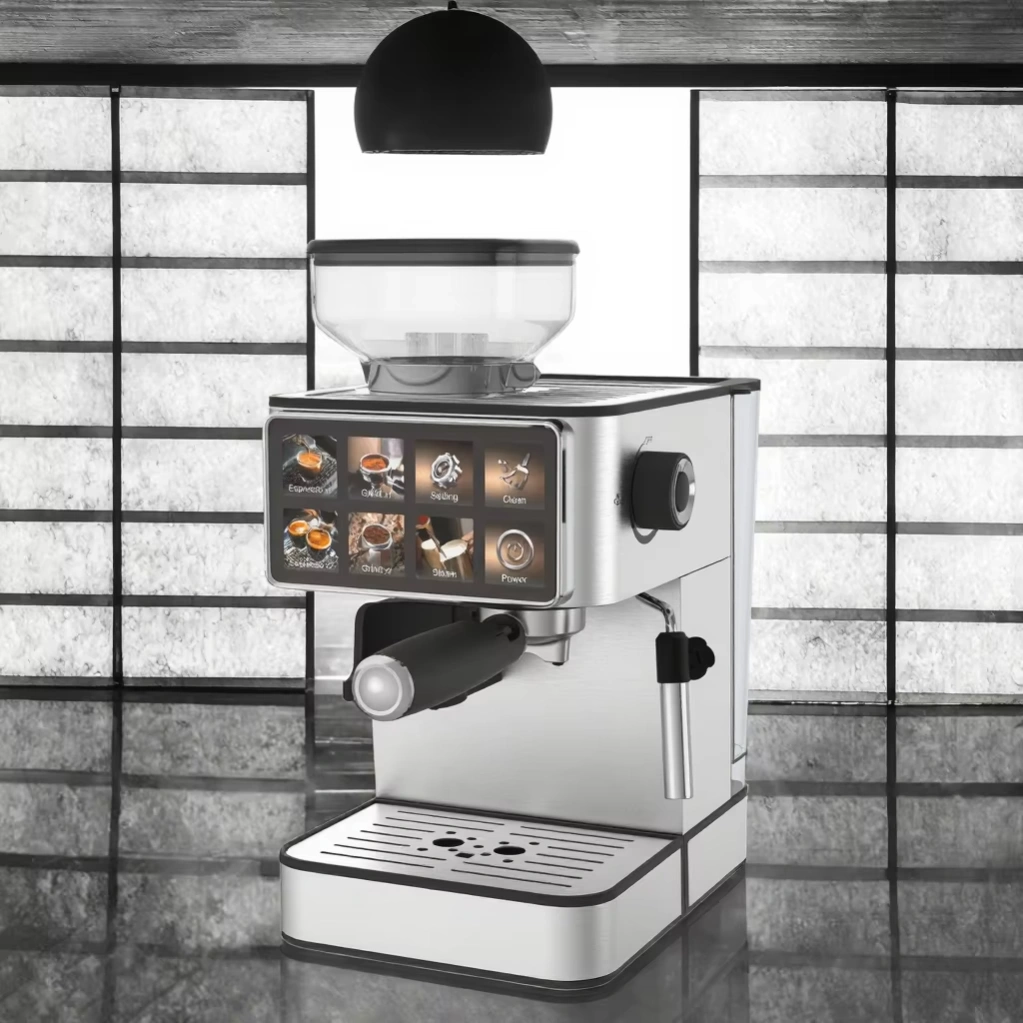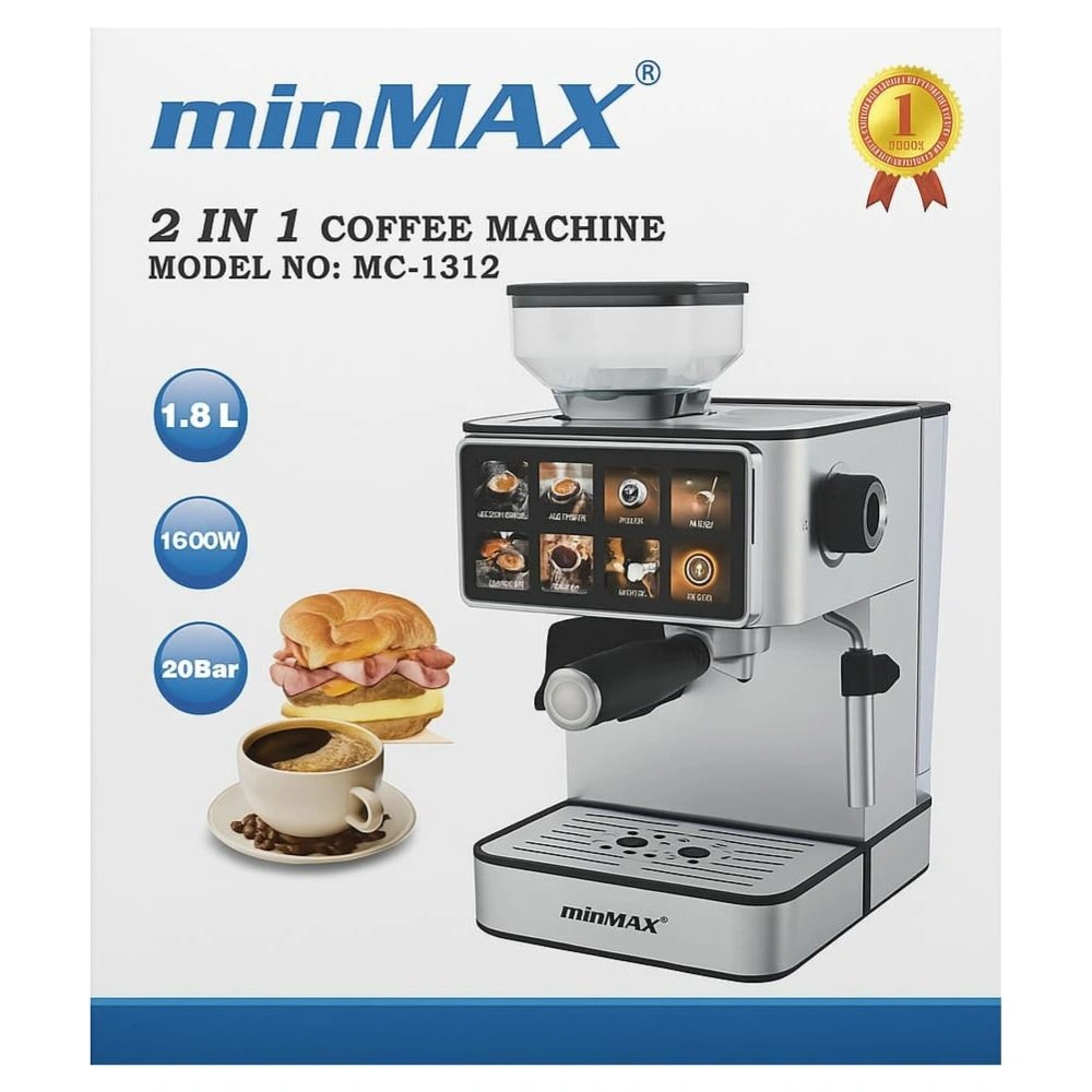 Enjoy barista-quality coffee at home with the 2 in 1 Coffee Machine with Grinder & Milk Frother – 20 Bar, 1.8L Stainless Steel Automatic Espresso Machine by MinMax. Featuring a powerful 20-bar pressure pump, built-in adjustable grinder, and touch-screen digital control, it delivers rich, aromatic espresso every time. The 1.8L water tank and one-touch cappuccino function make brewing simple and efficient. Perfect for both household and commercial use, this energy-efficient Class A coffee maker combines style, performance, and convenience.