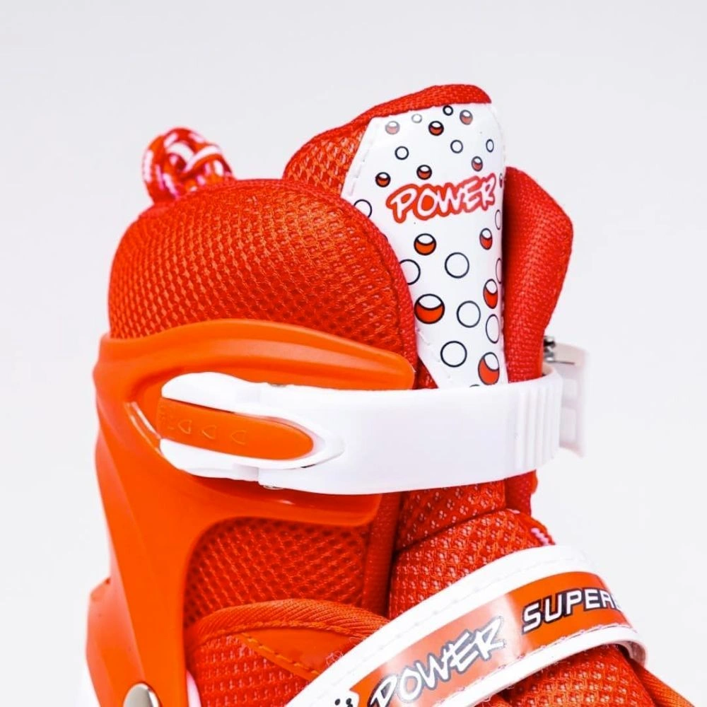 The triple protection system (ratchet buckle, power strap & lace-up closure) keeps the feet securely locked while the upgraded TPR brake stopper helps beginners stop safely and avoid collisions.