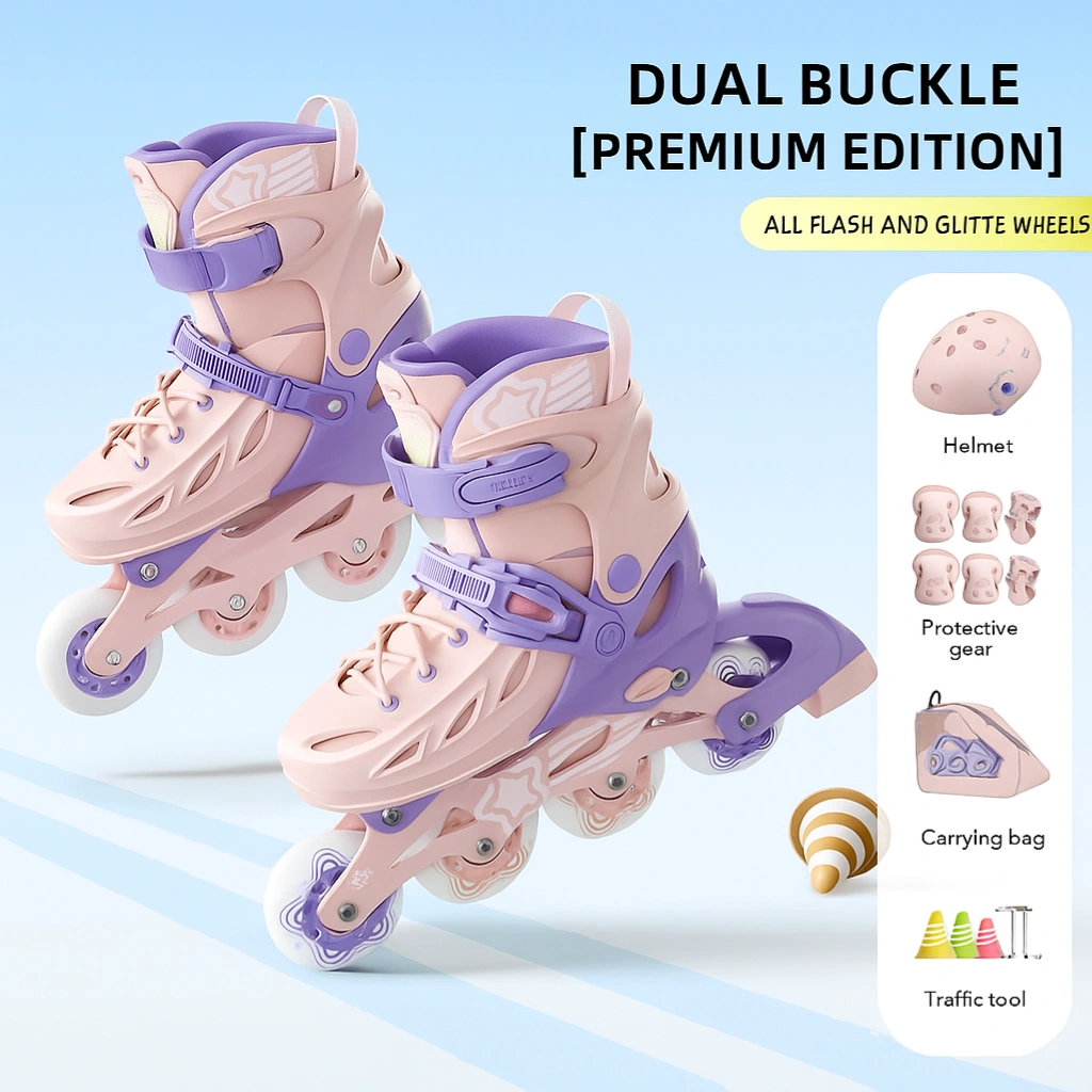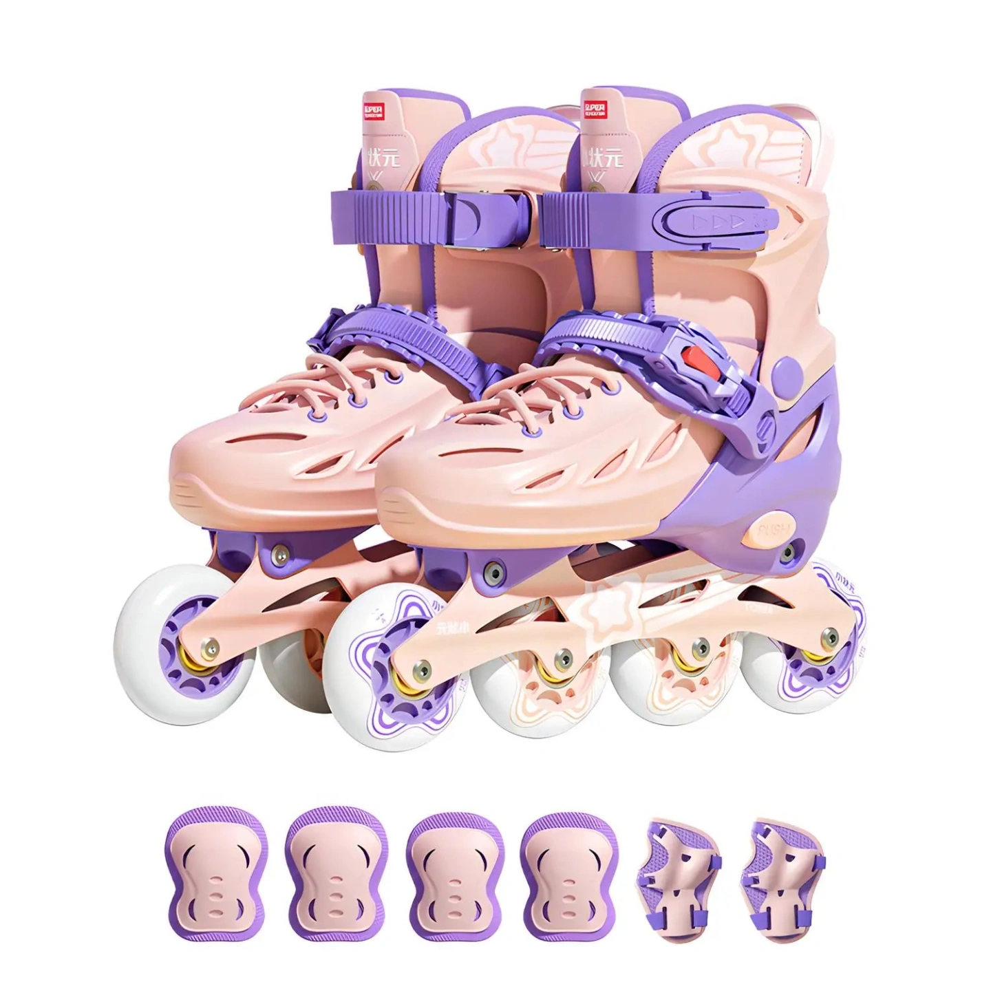 Enjoy safe and fun skating with these ABEC 7 professional roller skates. Designed for kids and adults, they feature adjustable sizing, breathable leather material, and light-up wheels. Perfect for slalom, urban, and fitness skating. Includes protective gear for full safety.