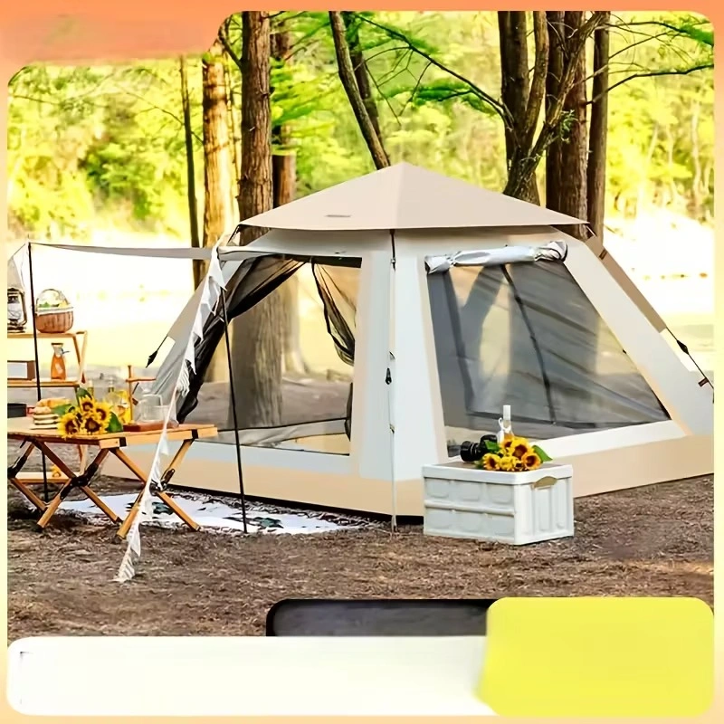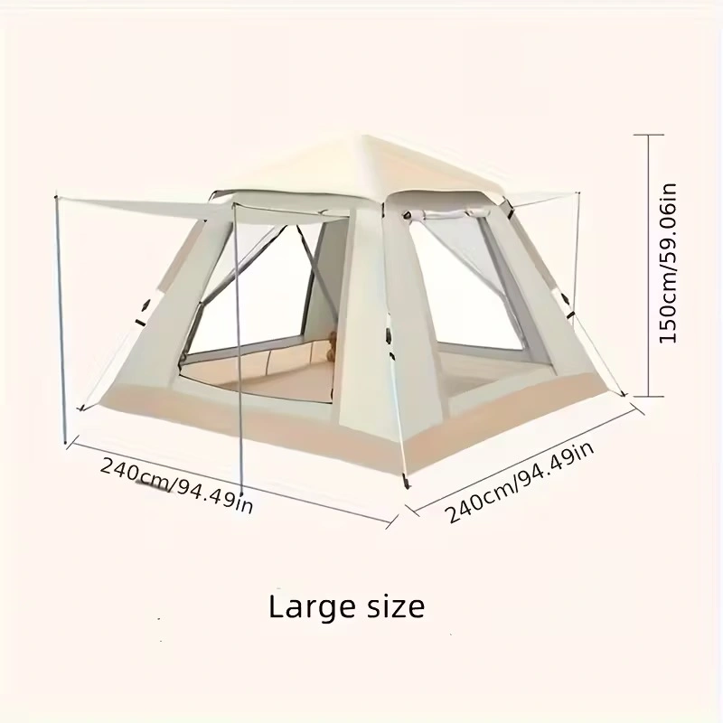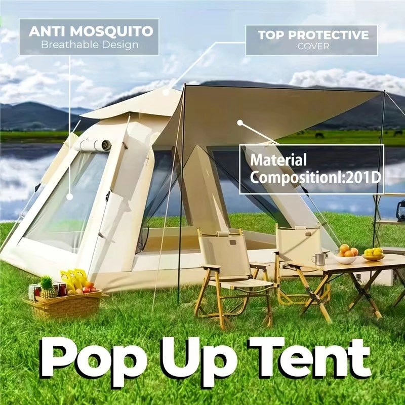 Enjoy effortless camping with this fully automatic hydraulic tent for 4–6 people. Designed with durable 210D Oxford fabric and a waterproof rating up to 3000mm, it provides excellent protection against rain, wind, and UV rays. The double-layer design ensures ventilation and comfort, while the quick setup system lets you open the tent in just 3 seconds. Perfect for beach trips, mountain hikes, or family camping — a reliable all-season shelter that doubles as a gazebo when curtains are lifted.
