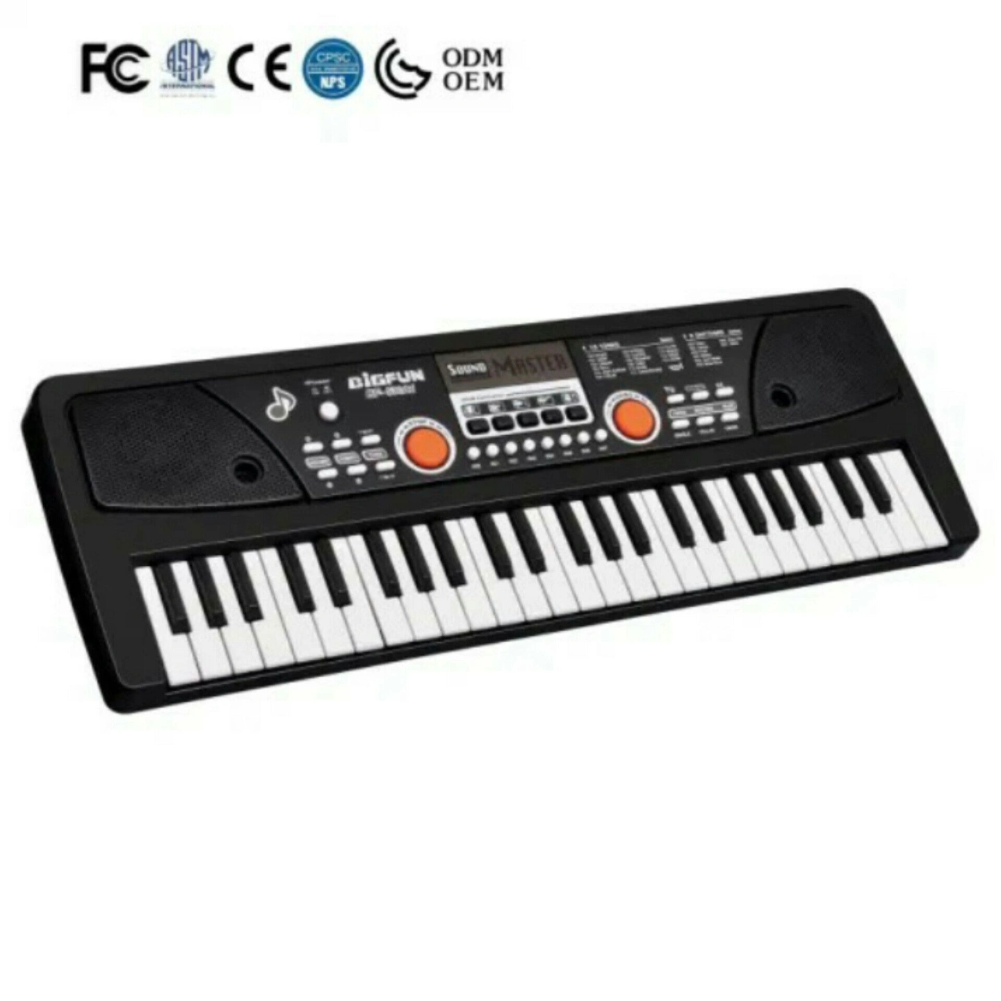 Bigfun BF-530A1 49 Keys Electronic Keyboard Piano is the perfect musical gift for kids. Designed with 16 tones, 8 rhythms, and 6 demo songs, it helps children learn music while having fun. The piano includes a microphone, USB cable, and multiple power options — play with USB, DC, or 4 AA batteries. Ideal for kids above 3 years to develop musical and creative skills.