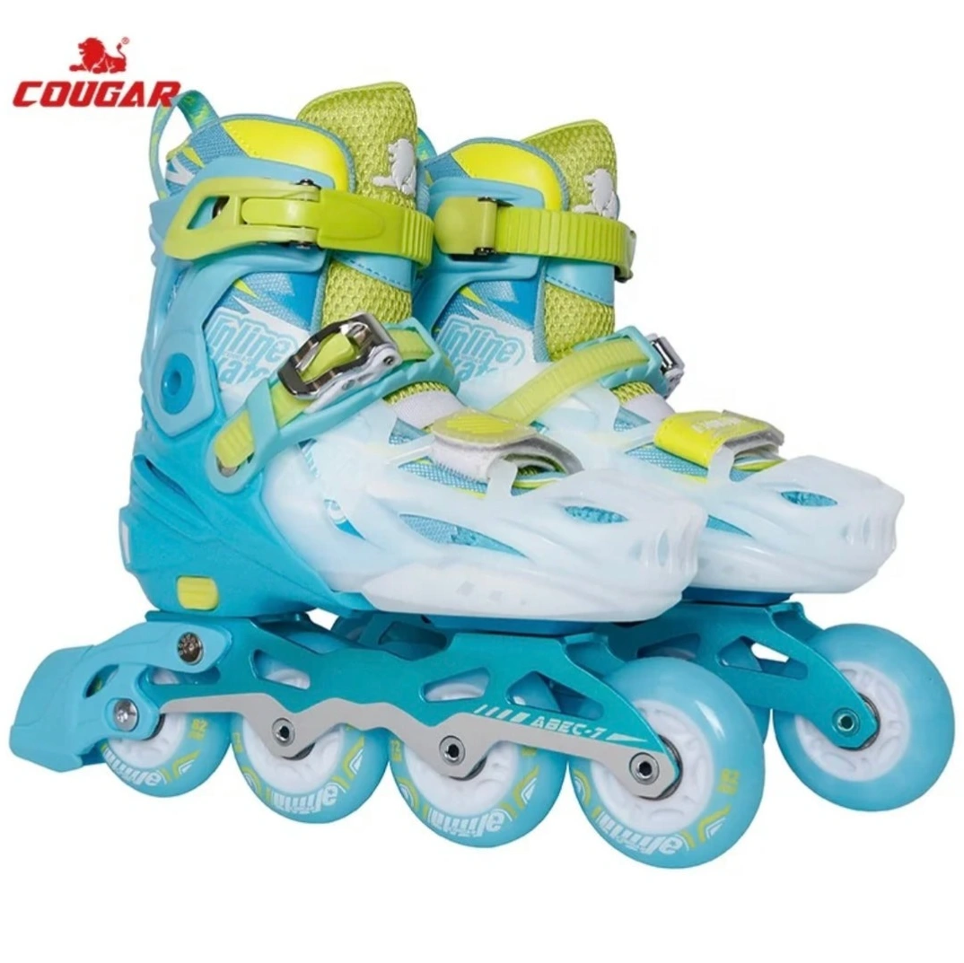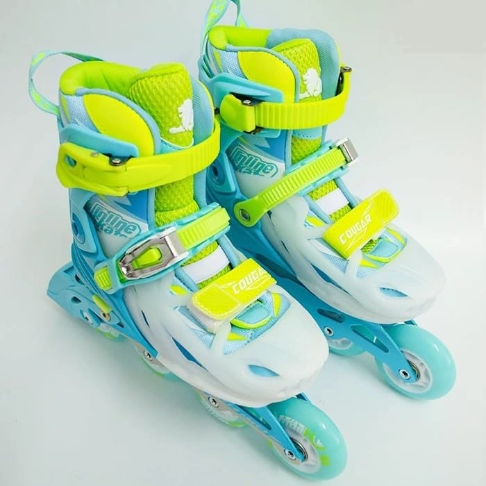 Enjoy smooth and safe skating with Cougar Adjustable Inline Roller Skates, perfect for boys, girls, beginners, and adults. Made with a durable aluminum frame, 85A PU wear-resistant light-up wheels, and ABEC-7 chrome bearings, these skates deliver top performance and stability. The comfortable inner lining features breathable mesh and shock-absorbing heel padding for maximum comfort, while the triple protection closure system (buckle, strap, and lace) ensures a secure fit. The adjustable size allows long-term use, making it ideal for both indoor and outdoor skating.