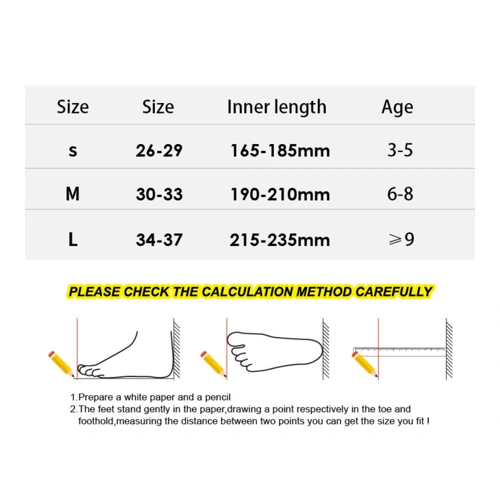 • Large (L): 34–37 makes them perfect for growing kids. Available with flashing wheels for extra excitement!