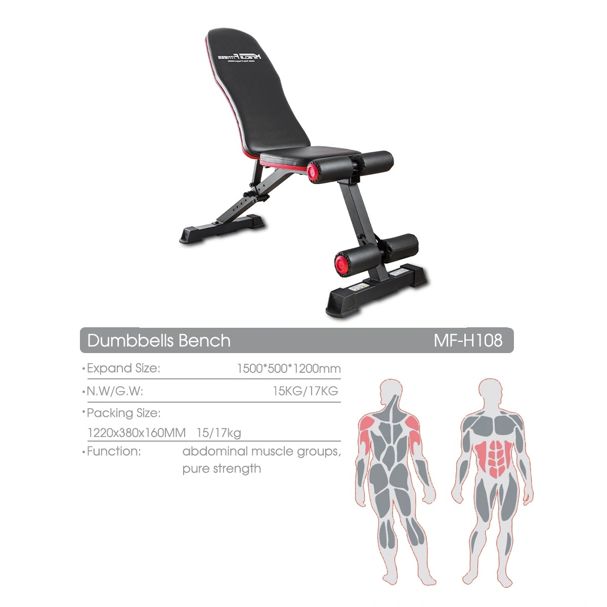 Take your home or gym workouts to the next level with the Heavy Duty Dumbbell Bench MF-H108. Built for serious lifters and fitness enthusiasts, this bench is designed to support a wide range of upper body and core exercises. With a sturdy steel frame, compact foldable design, and ergonomic support, it targets abdominal muscle groups and pure strength training.