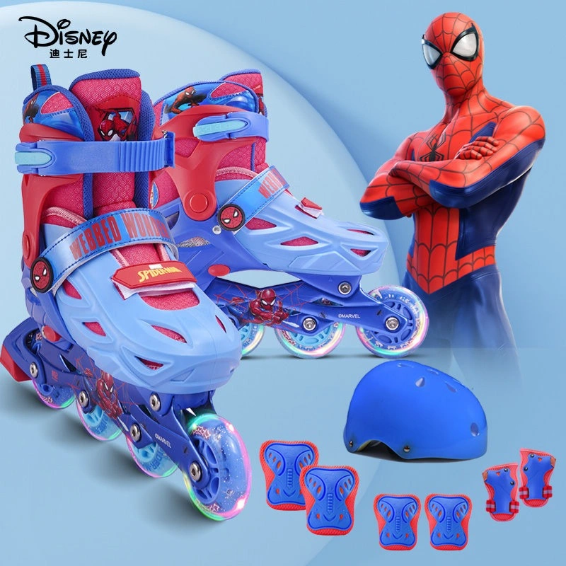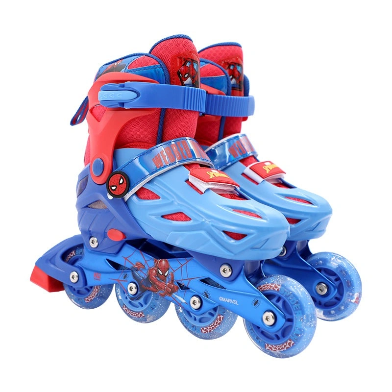 Let your little hero skate in style with the Marvel Spider-Man Roller Skates Combo Set. Designed with a vibrant red and blue theme, this set includes adjustable inline skates, a safety helmet, and protective pads for knees, elbows, and wrists. The skates feature durable construction, LED flashing wheels, and a secure double buckle system for a comfortable fit. Perfect for kids learning to skate while showing off their favorite superhero!