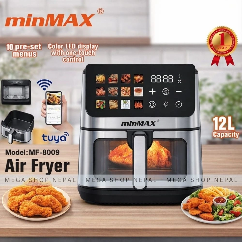 MinMax 12L Oil-Free Digital Air Fryer MF-8009 | 2200W | Stainless Steel | 12 Preset Menus