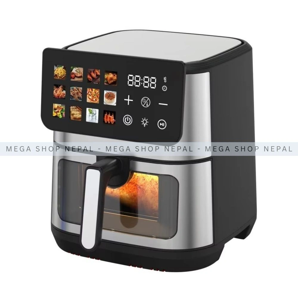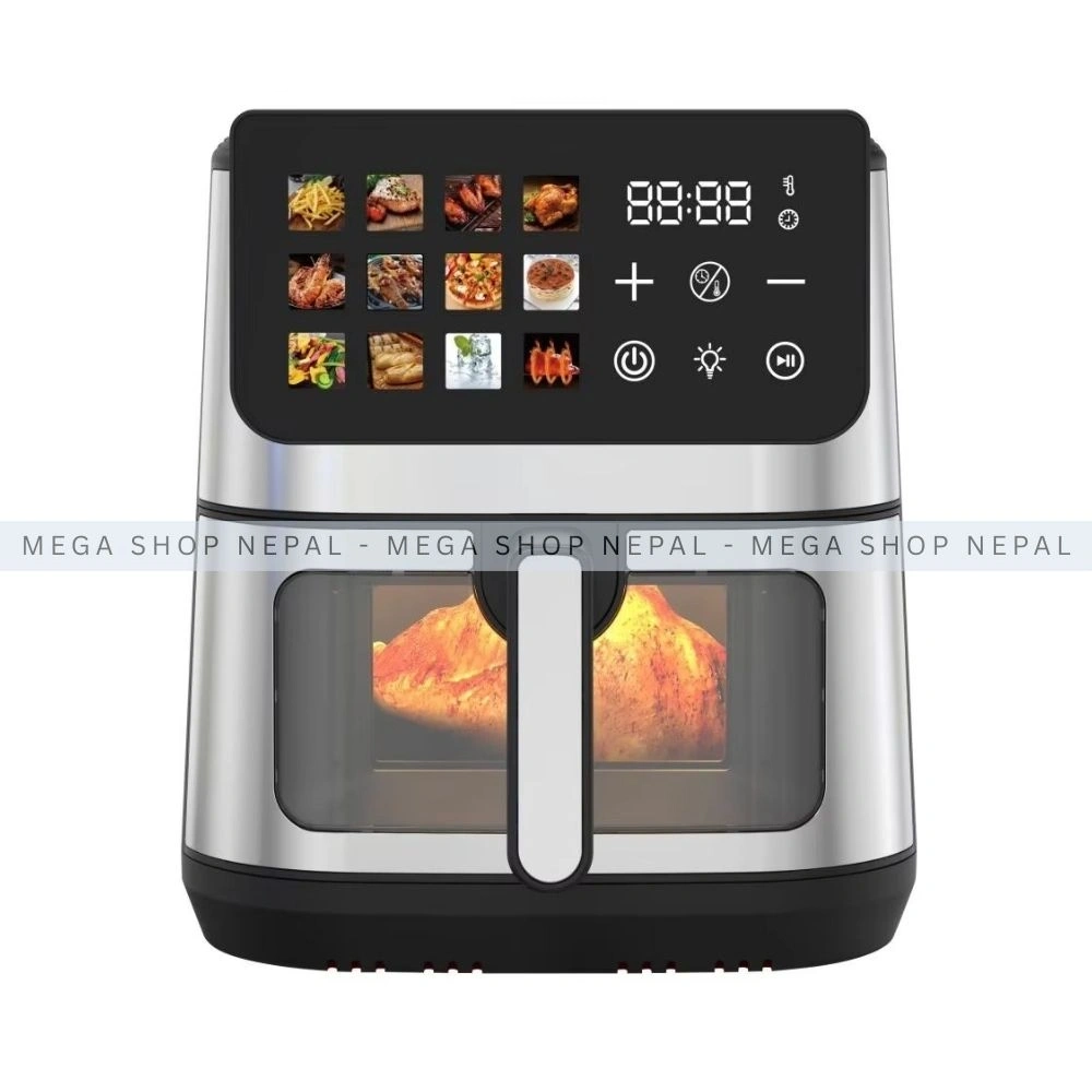 With a large 12-liter capacity, it’s perfect for families, parties, and meal prep. The digital LED touch panel with 12 pre-set cooking menus makes cooking effortless—just one touch and you’re done. Its 304 stainless steel heating tube ensures fast and even heat distribution, while the visual window lets you monitor your food without opening the fryer.