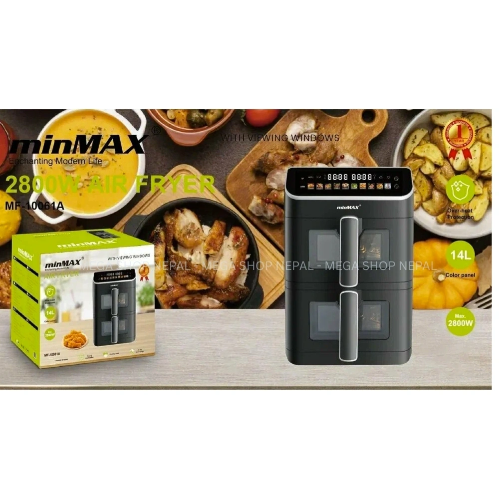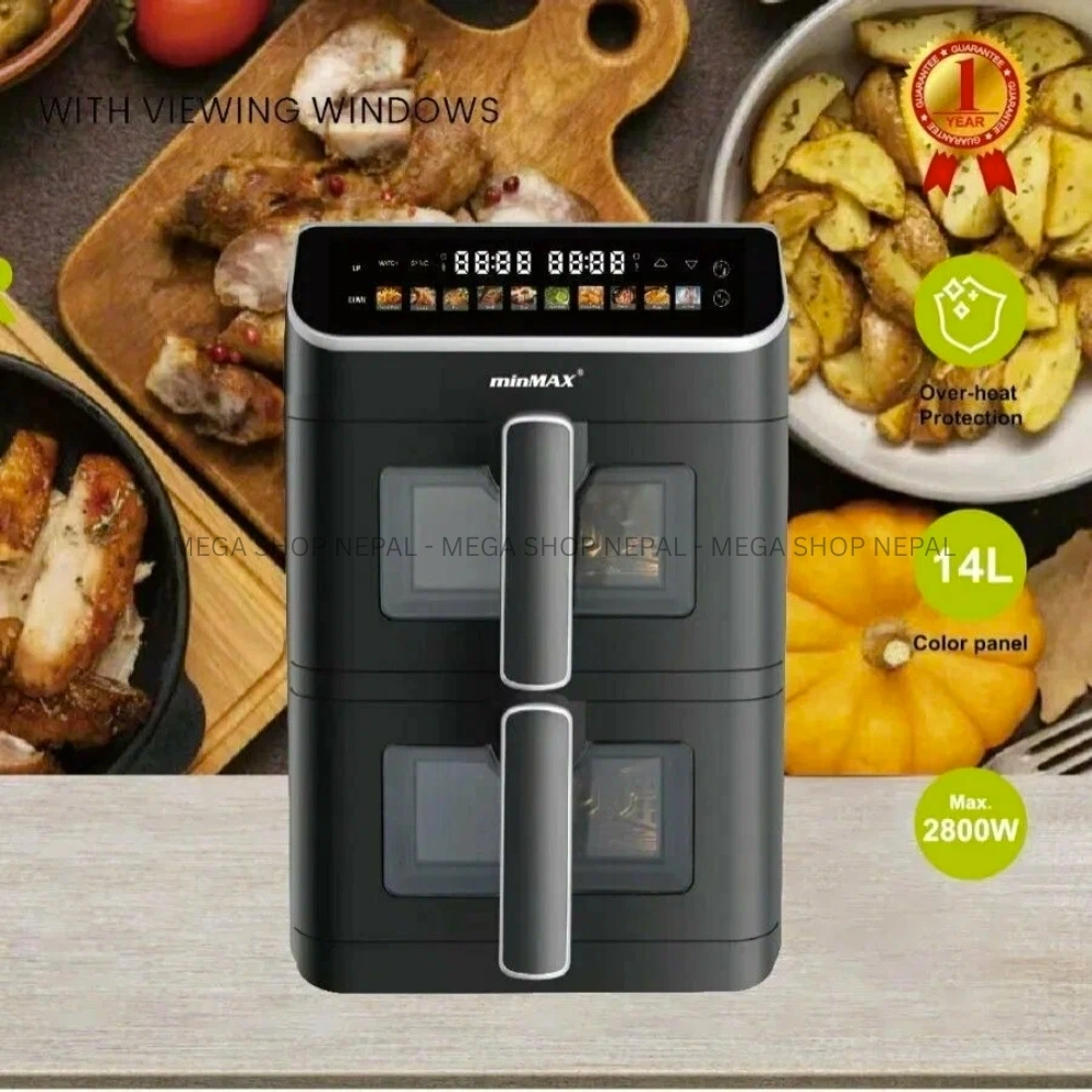 Upgrade your kitchen with the Minmax 2800W Double Stack Air Fryer, designed for fast, healthy, and convenient cooking. With a large 14-liter capacity and double stack dual basket design, you can cook two different foods separately at the same time using the top and bottom baskets.