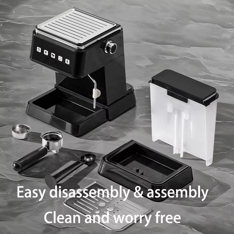 With a 1.5L removable water tank, 1350W powerful motor, and sleek black finish, this coffee maker combines performance, style, and convenience — ideal for homes, offices, and small cafés.